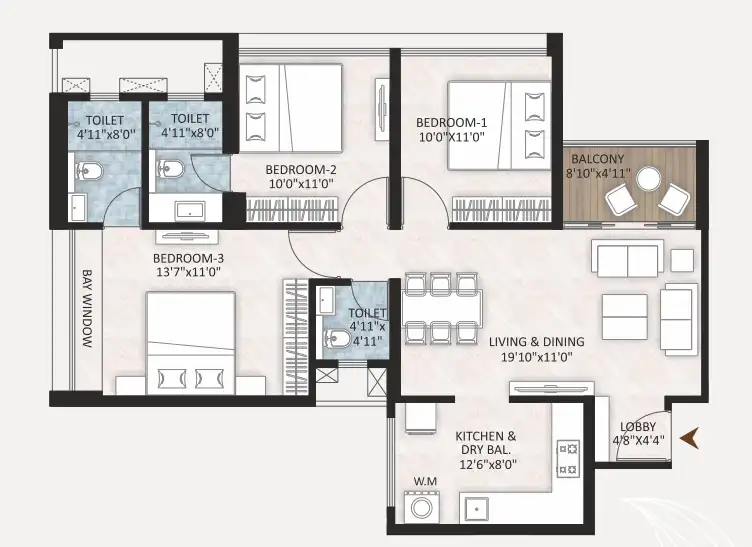 - TV & DTH point in living & en suite bedrooms.